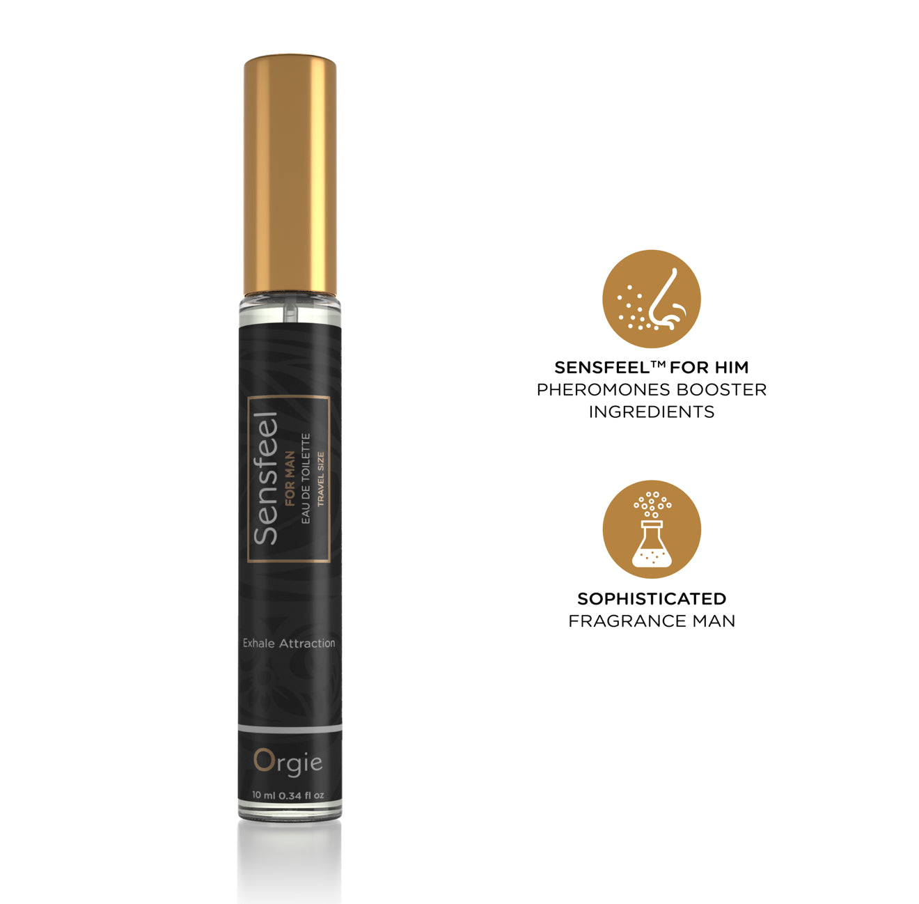 O Perfume EDT Sensfeel for Man de 10ml é uma fórmula exclusiva Orgie que contém o ingrediente ativo de base natural Sensfeel™ for Him, um potenciador de feromonas que consegue aumentar o poder de atração dos homens através da ação simultânea de dois dos seus componentes: Forskolin que aumenta a expressão da enzima 3 beta-HSD potenciando a produção de androstadienona, e teaflavinas, que reduzem a atividade da enzima 5-alfa-redutase, diminuindo o metabolismo da androstadienona e resultando na sua acumulação.